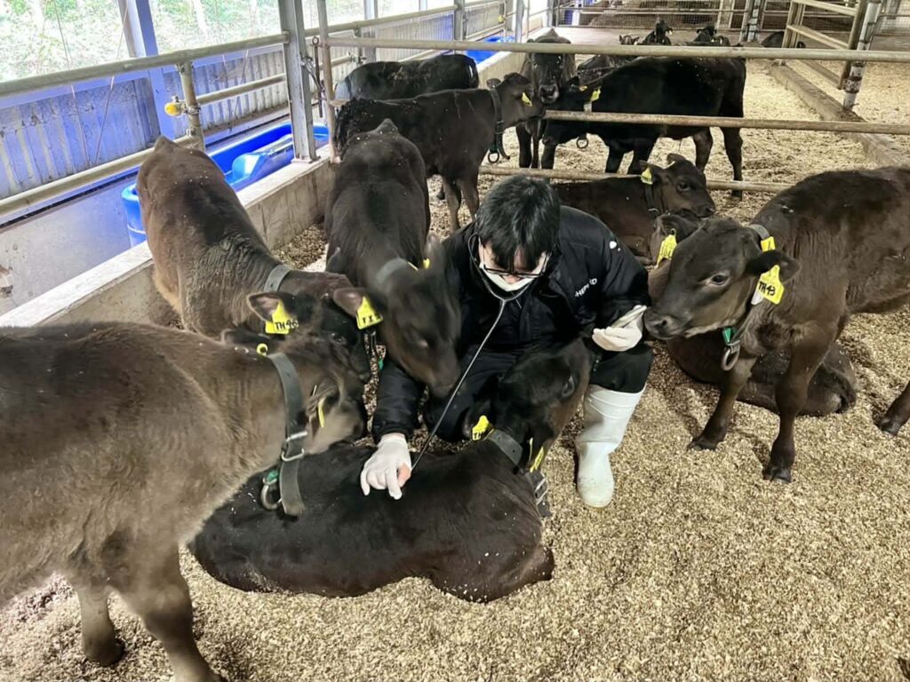 Based in Kagoshima (main office) and Tochigi (branch), he provides clinical care, embryo transfer (OPU), farm consulting, lectures, and remote consultations. His work centers on field observation and practical implementation, supporting both the lives of cattle and the livelihoods of farmers.